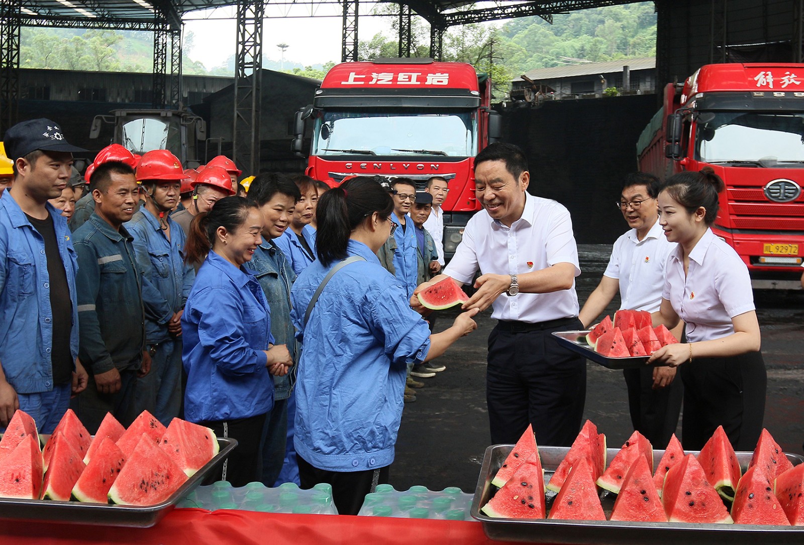 鄧凱一行代表川投集團(tuán)看望慰問(wèn)了嘉陽(yáng)煤礦炭壩等高溫戰(zhàn)線上工作的職工,與大家親切交流,了解了其工作生活情況,并將甘甜的西瓜和清涼的礦泉水紛紛送到職工們手中,不斷叮囑大家注意身體健康和工作安全,祝大家身體健康、工作順利。