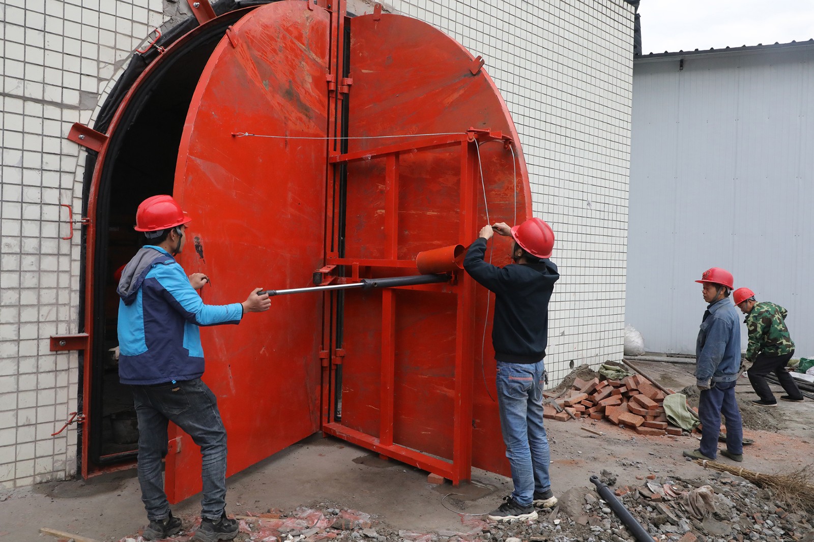 在正常通風條件下,防爆門與門框緊密貼合,形成一道堅固的屏障,有效隔絕井下氣流與外界接觸。一旦遭遇風機故障或其他突發事件導致風道內負壓消失,防爆門能在重力作用下自動開啟,確保井下自然通風不受阻,保障礦工生命安全。在發生爆炸的極端條件下,防爆門能夠在沖擊波氣流沖擊下迅速打開,釋放高壓氣體,防止更大規模災害的發生,隨后自動回復至自然通風狀態。