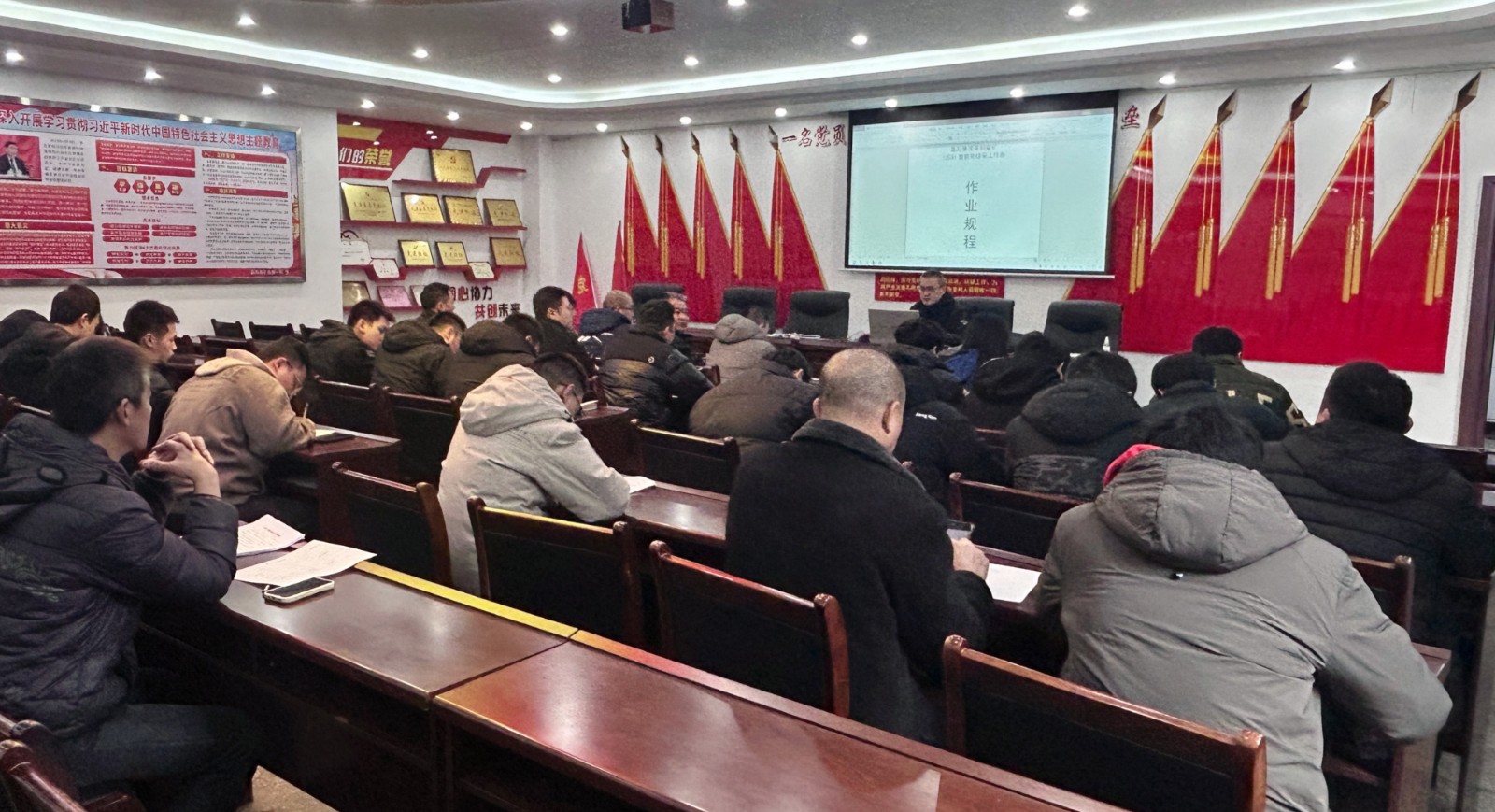 培訓由嘉陽煤礦生技科科長潘剛主講,通過理論講解與案例分析相結合的方式,深入淺出地講述了采掘標準化操作的重要性及具體要求。培訓內容涵蓋設備操作規程、安全生產要點、應急處理措施等方面。潘剛還深入解讀了智能化工作面的技術原理和實踐操作,結合工作面推進過程中出現的問題進行交流研討,為職工答疑解惑。