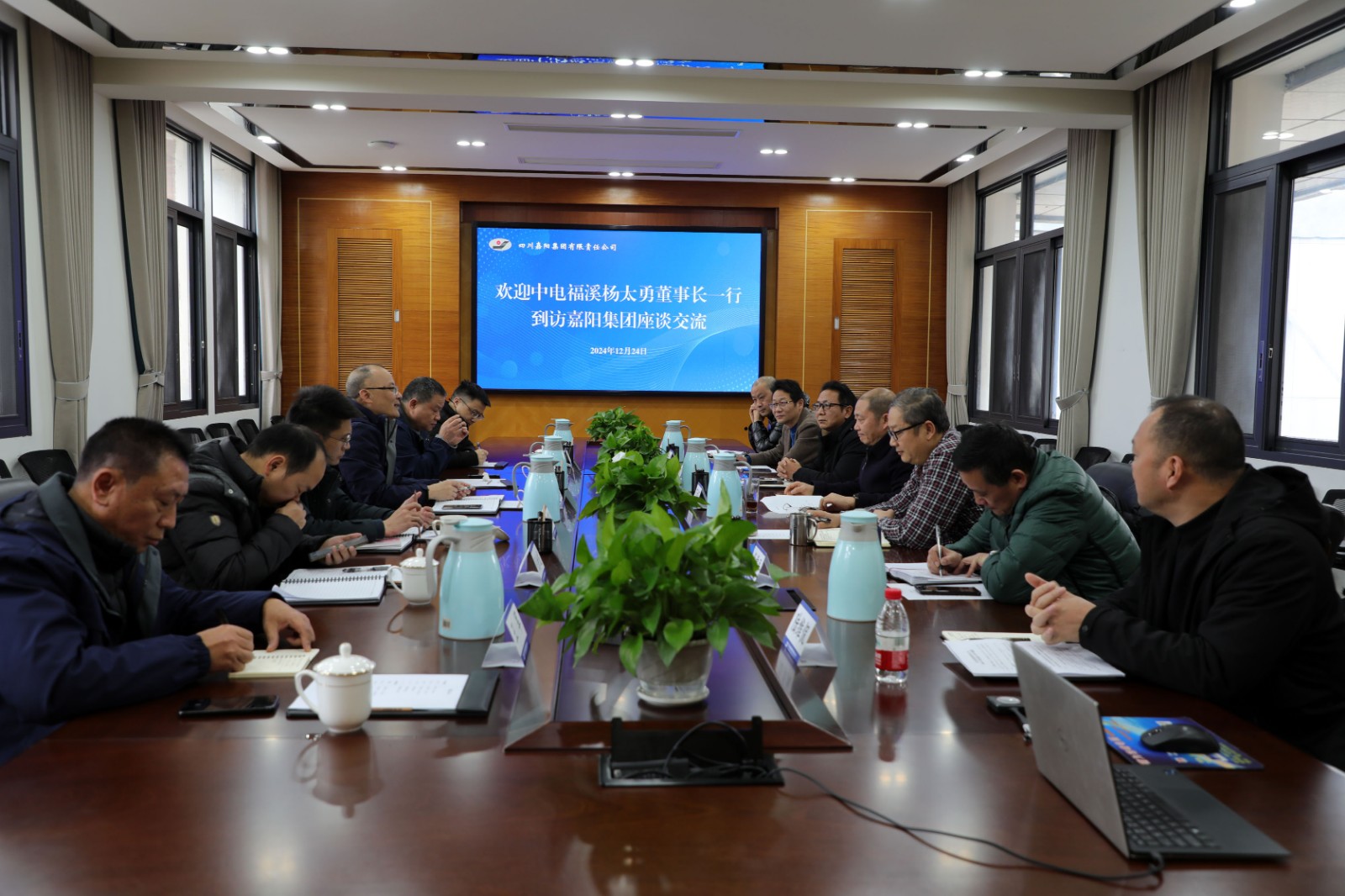 12月24日,中電福溪電力開發有限公司黨委書記、董事長楊太勇一行到訪嘉陽,雙方就合作事宜進行了座談交流。
