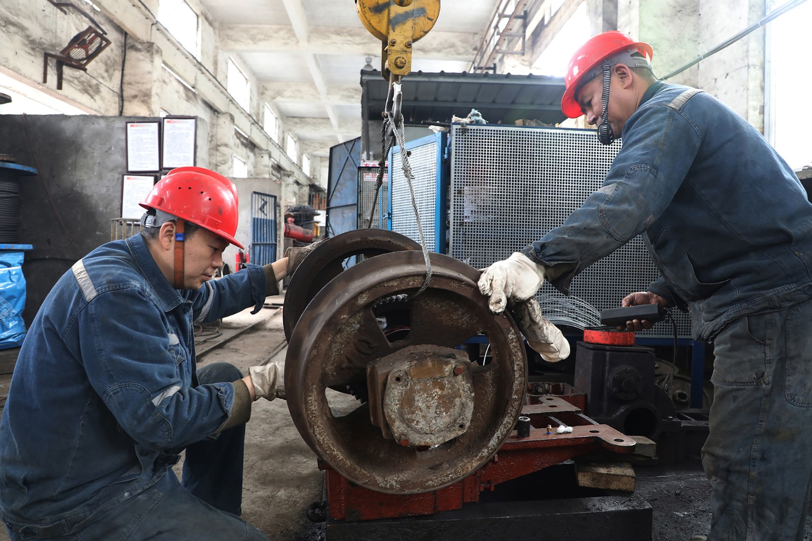 為破解難題,夏若介依托多年的實踐經驗巧思妙想,利用減速器內部空隙,設計了一個隨動泵主動給油裝置,實現機車運轉即時潤滑。設計方案以機車齒輪旋轉為驅動,通過特殊設計的柱塞泵將齒輪油精確輸送到需要潤滑的關鍵部位。采用不同直徑的鋼棒鉆孔加工,搭配合適彈簧,形成泵體組件,與柱塞泵上焊接的撥塊配合,確保了油液輸送的連貫性和穩定性。經焊接、安裝和調試,該裝置與油底殼緊密結合,飲水機的輸水軟管固定于減速器箱體內壁合適位置,定向為齒輪及軸承供油,實現連續潤滑,極大降低了磨損率。