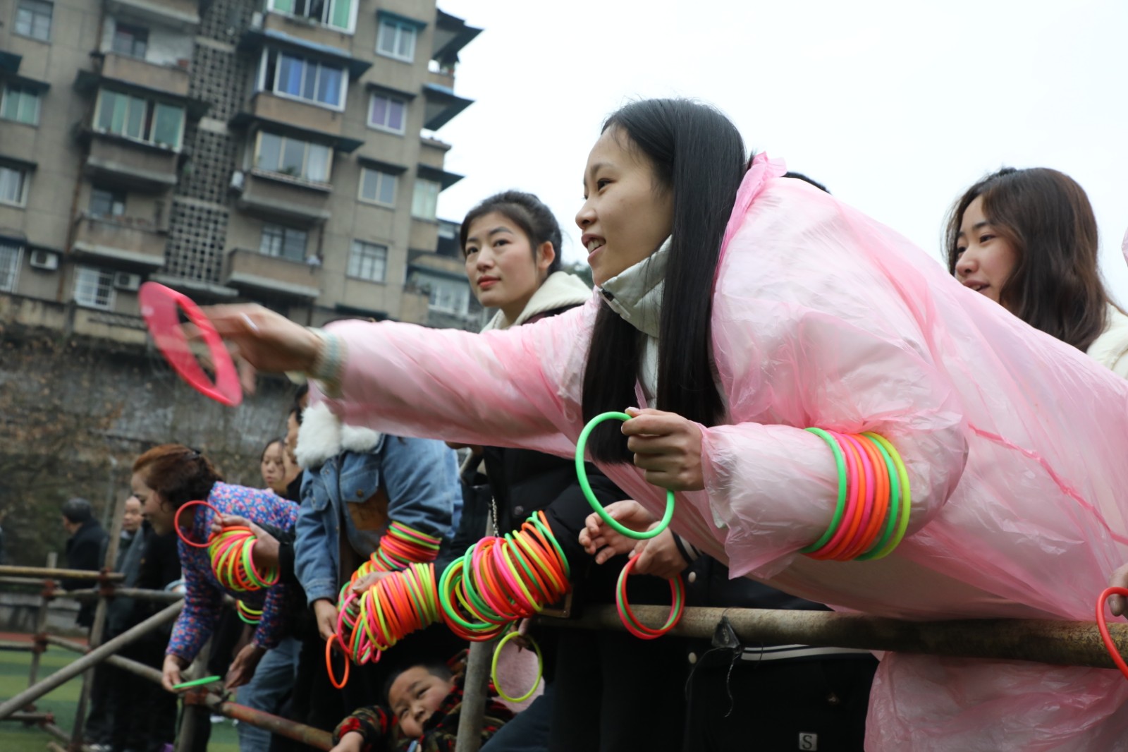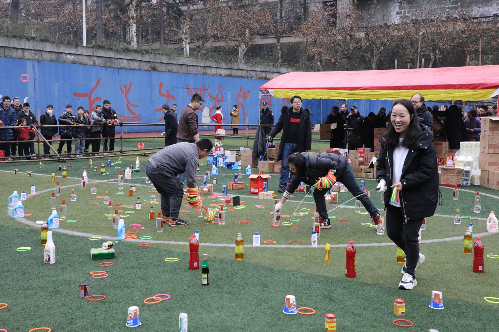 礦區足球場和芭溝老礦區分會場的實物套圈活動同樣人氣爆棚。“甩遠點,套瓶好酒!”套圈場地被圍得水泄不通。職工家屬們手持套圈,神情專注,朝著心儀的獎品奮力投出。每當有人成功套中目標,周圍便傳來陣陣喝彩聲,現場氣氛熱鬧非凡。
