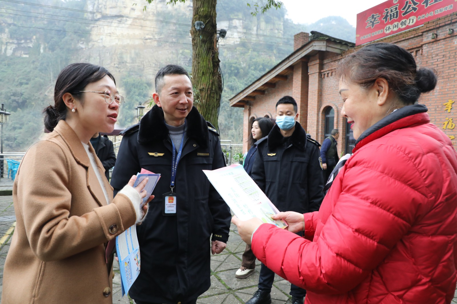 在芭蕉溝商業街,市場監督管理局的工作人員督導檢查餐館食品衛生安全,引導商戶文明誠信經營,打造安全放心的消費環境;在景區服務點,公司法務部的同志向工作人員講解《消費者權益保護法》相關知識,增強服務人員的法律意識、文明意識,做文明旅游踐行者,共同營造誠信景區環境;活動現場還設置了法律咨詢服務點,升力律所的律師向游客發放《民法典宣傳折頁》《“八五”普法宣傳冊》等普法資料,為游客們免費提供了法律咨詢服務,用心用情把法律知識送到群眾身邊。