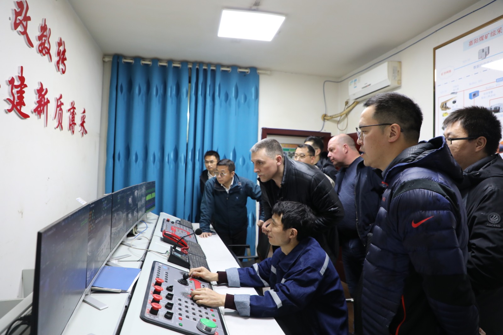考察交流團(tuán)深入12031采煤工作面實(shí)地察看了智能化綜采生產(chǎn)流程,到1203設(shè)備道觀看了智能化綜采井下配套設(shè)備系統(tǒng)。先后到嘉陽煤礦采一隊(duì)、采二隊(duì)智能遠(yuǎn)程操控中心,觀摩智能化遠(yuǎn)程操控簡(jiǎn)約規(guī)劃開采實(shí)際操作,通過視頻監(jiān)控了解井下設(shè)備對(duì)應(yīng)遠(yuǎn)程操控的運(yùn)行情況,并對(duì)嘉陽煤礦自動(dòng)化控制系統(tǒng)、遠(yuǎn)程監(jiān)測(cè)技術(shù)以及智能化采煤工藝表現(xiàn)出濃厚興趣。
