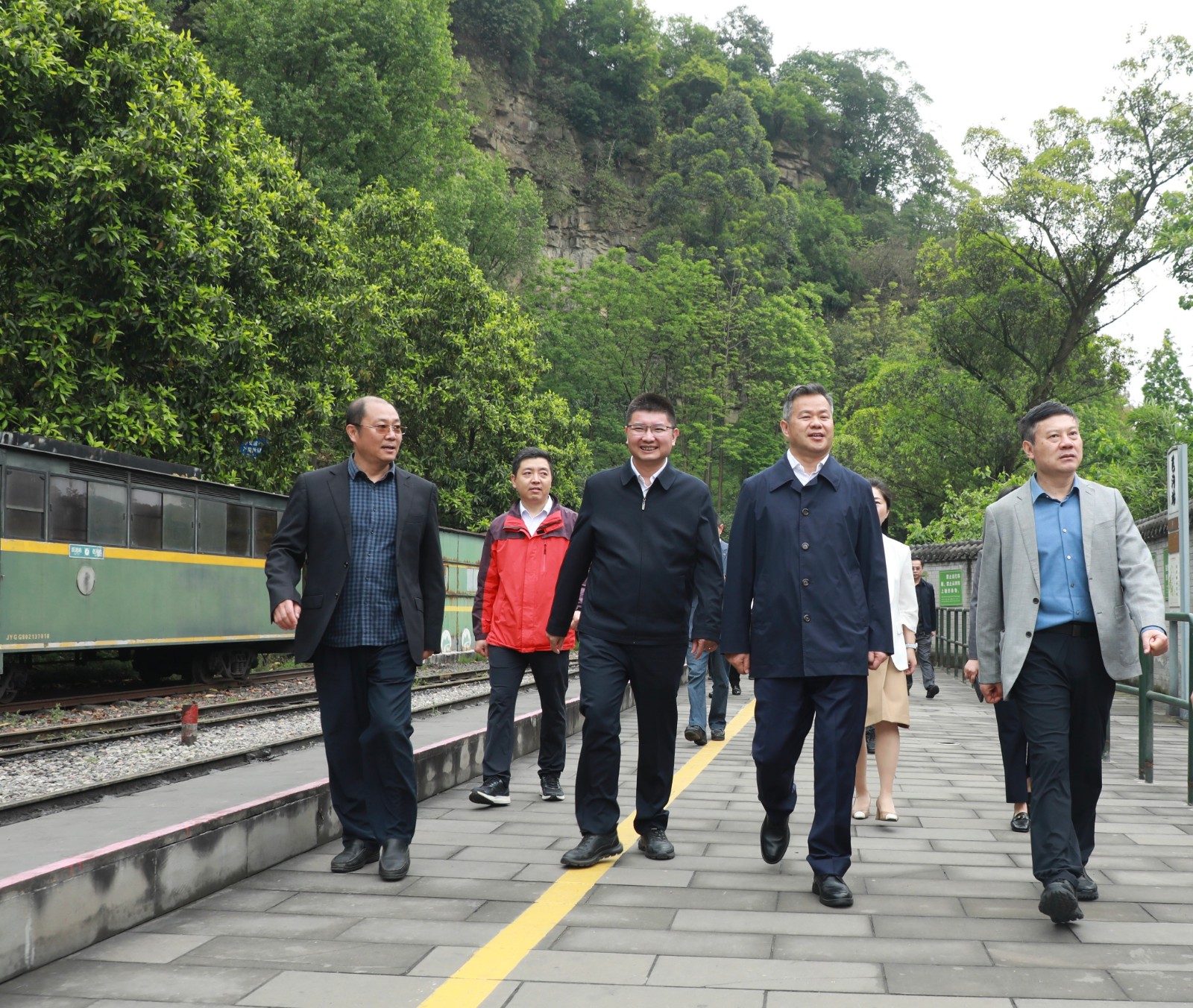4 月 24 日,民革中央副主席、省政協副主席、民革四川省委會主委歐陽澤華率隊來到芭蕉溝,深入調研嘉陽文旅融合及全國民革黨員教育基地建設等情況。集團公司黨委副書記、總經理范勤英全程陪同。