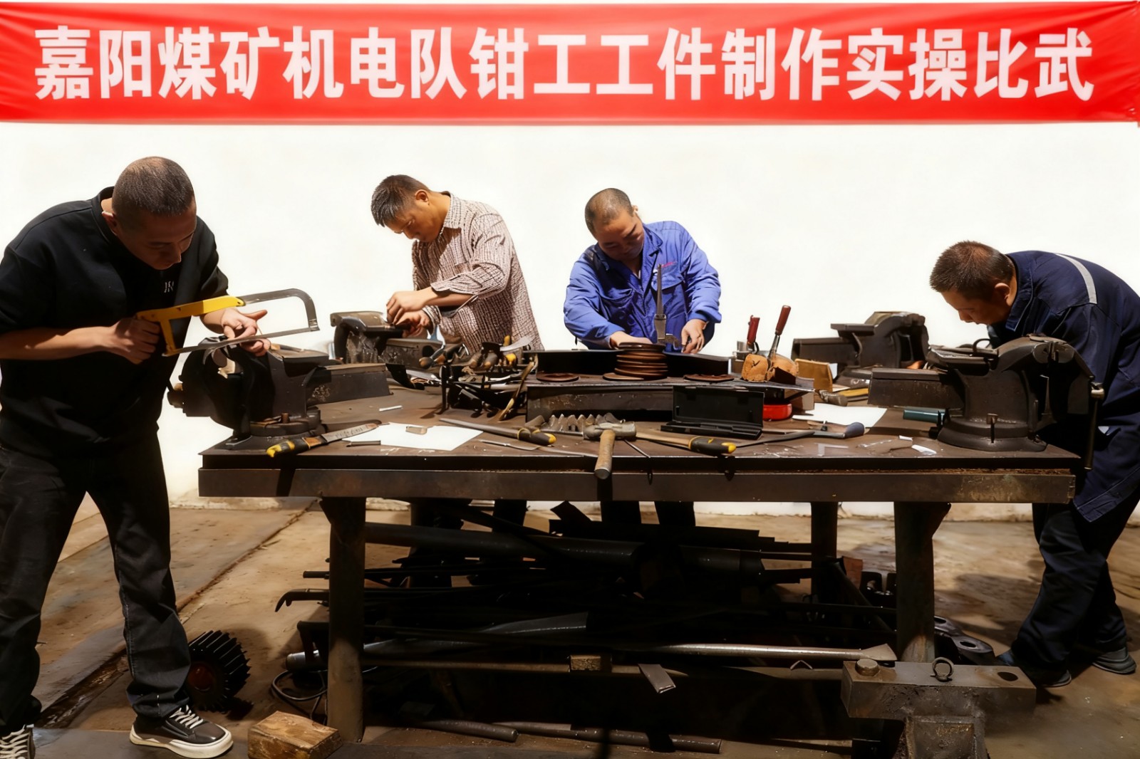10月23日至24日,嘉陽煤礦機電隊各車間呈現出一派繁忙的勞動景象,初、中、高三個級別的58名電工與鉗工在鉗臺同步實操,展開鉗工技藝與速度的激烈比拼。這是機電隊今年首次大規模技術練兵,采用“理論+實操+綜合比武”模式,以賽促學、強技,鍛造高素質藍領精英。