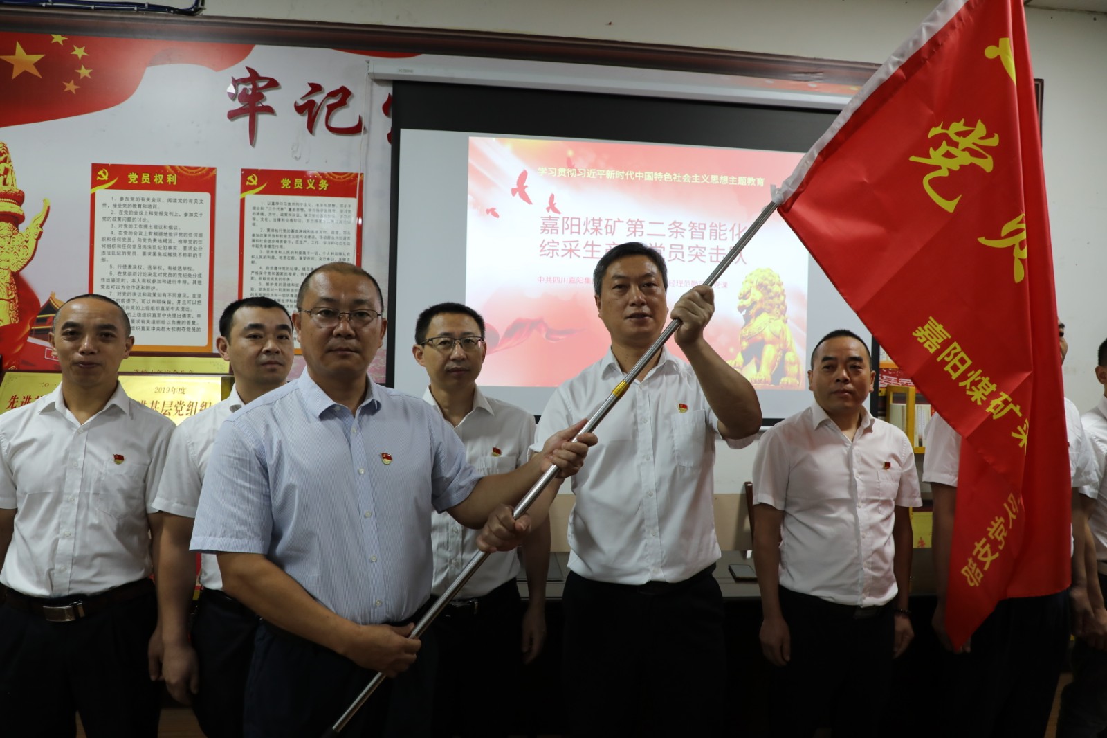 在主題教育學(xué)習(xí)中,公司批準(zhǔn)了采二隊結(jié)合自身實際成立了智能化綜采黨員突擊隊,將對第二條智能化綜采生產(chǎn)工作面噴霧降塵系統(tǒng)、采煤機(jī)記憶切割和支架自動跟機(jī)拉架、智能化綜采工藝升級、智能化綜采生產(chǎn)工作面沿空留巷、成本管控等進(jìn)行全方位攻關(guān)。范勤英向采二隊成立智能化綜采黨員突擊隊表示祝賀,希望他們勤奮工作創(chuàng)造佳績,并為采二隊授旗。