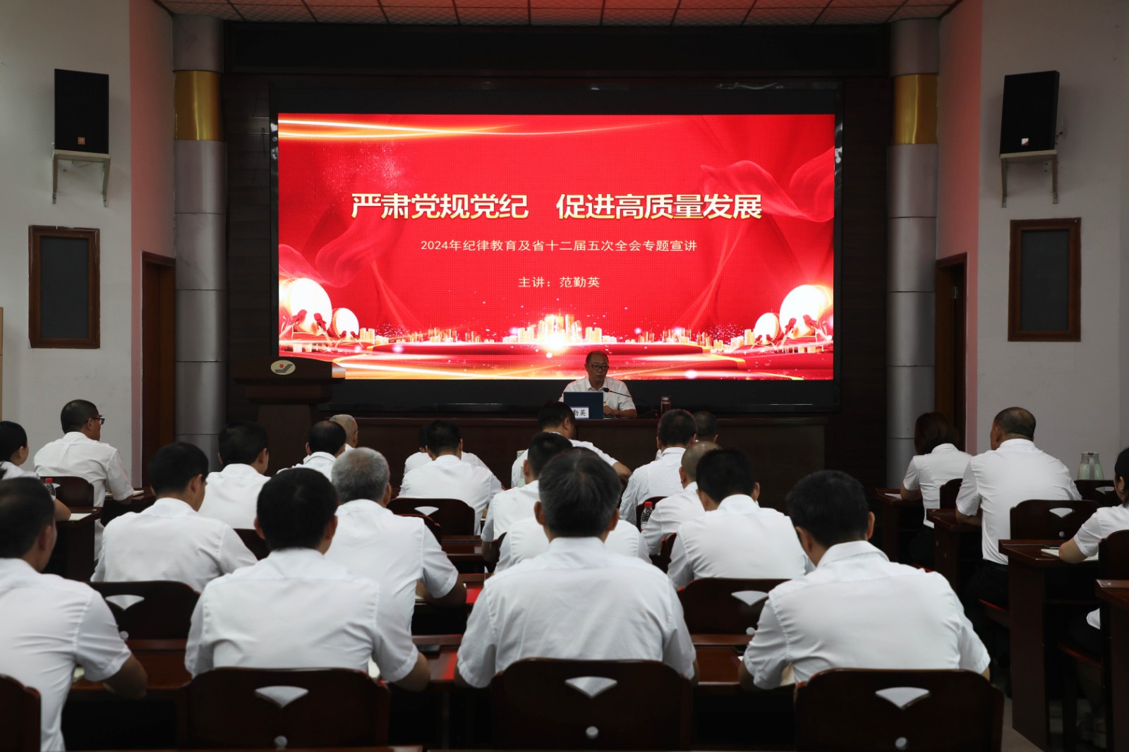 7月4日,集團公司黨委副書記、總經(jīng)理范勤英作《嚴(yán)肅黨規(guī)黨紀(jì),促進高質(zhì)量發(fā)展》專題黨課宣講,機關(guān)第三黨支部、川投峨旅黨總支及所聯(lián)系隊站黨支部共60余人聆聽了宣講。